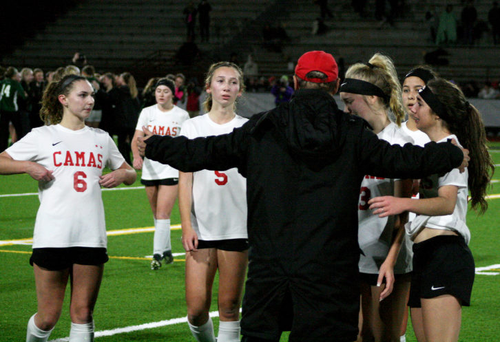 The Camas girls huddled at midfield after the loss, with tears flowing, to listen to their coach’s wisdom one final time.